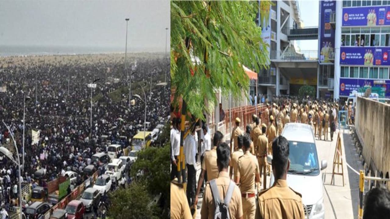 இந்த நிலையில், போராட்டக்காரர்கள் எச்சரிக்கையால் கிரிக்கெட் மைதானம் அமைந்துள்ள சேப்பாக்கம் பகுதிகளிலும், கிரிகெட் வீரர்கள் தங்கியுள்ள தனியார் ஹோட்டல்களும் போலிசின் கட்டுப்பட்டிற்குள் கொண்டுவரப்பட்டுள்ளது. இதுவரை இல்லாத அளவிற்கு கிரிகெட் வீரர்களுக்கு அதிக பாதுகாப்பு வழங்கப்பட்டுள்ளது. கிரிக்கெட் வீரர்கள் இன்று மாலை, தாங்கள் தங்கியுள்ள நட்சத்திர ஹோட்டல்களில் இருந்து மைதானத்திற்கு சொகுசு பஸ்களில் அழைத்துவரப்படுவார்கள்.