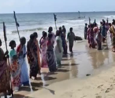 இந்நிலையில், புதுச்சேரி மாநிலம் நல்லவாடு மீனவ கிராமத்தை சேர்ந்த மீனவ மக்கள், இன்று காலை முதல் பெண்கள், குழந்தைகளுடன், குடும்பத்தோடு கடலில் இறங்கி மனித சங்கிலி போராட்டத்தில் ஈடுபட்டு வருகின்றனர்.