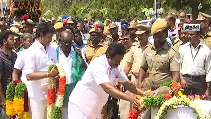 காஷ்மீர் புல்வாமா மாவட்டத்தில் தீவிரவாதிகள் நடத்திய தற்கொலைப்படை தாக்குதலில் வீரமரணம் அடைந்த தமிழக வீரர்கள் இருவரின் உடல்கள் திருச்சி வந்தடைந்தன. இதனையடுத்து சிவசந்திரன் உடல்களுக்கு அரசியல் தலைவர்கள் அஞ்சலி செலுத்தினர்.
