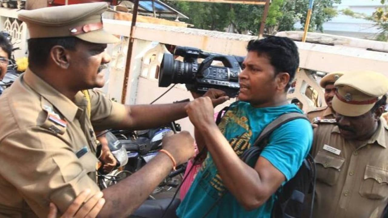 இதனால் போலீசாருக்கும் செய்தியாளர்களுக்கும் இடையே கடும் வாக்குவாதம், தள்ளுமுள்ளு ஏற்பட்டதால் பெரும் பரபரப்பு நிலவியது.