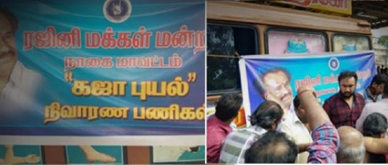 நடிகர் ரஜினியின் ரசிகர்கள் புயலால் பாதிக்கப்பட்டுள்ள நாகை,திருவாரூர், தஞ்சை மற்றும் புதுக்கோட்டை மாவட்டங்களில் புயலை விட வேகமாக நிவாரண பணிகளில் ஈடுபட்டுள்ளனர்.