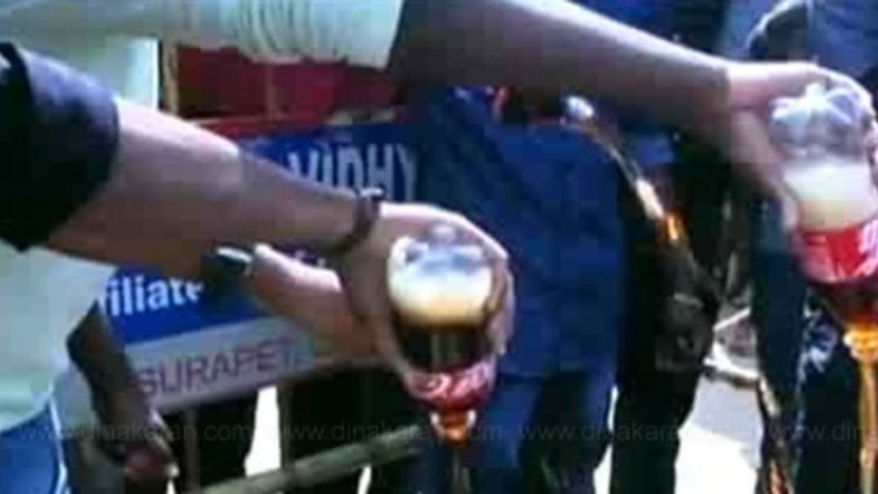 இதேபோல், சல்லிபட்டி, தேவனூர்புதூர், பெதப்பம்பட்டி, சாமராயபட்டி, மலையாண்டிபட்டிணம் ஆகிய கிராமங்களிலும் வெளிநாட்டு குளிர்பானங்களை சாலையில் கொட்டி போராட்டம் நடைபெற்றது.