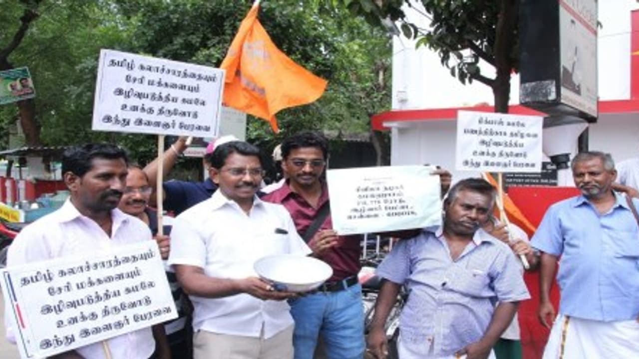 மதுரையில் நடைபெற்ற இந்த போராட்டத்தில், கைகயில் திருவோடு கொண்டு ஆர்ப்பாட்டம் செய்தனர். அப்போது பேசிய அவர்கள், நடிகர் கமல் ஹாசன், தொடர்ந்து தன் படங்களில் இந்து தெய்வங்களை இழிவாகக் காட்டி வந்தார். இந்து தெய்வங்களை விமர்சிக்கும் கமல், மற்ற மத தெய்வங்களை விமர்சிக்கும் தைரியம் உள்ளதா என போராட்டக்காரர்கள் அப்போது கேள்வி எழுப்பினர்.