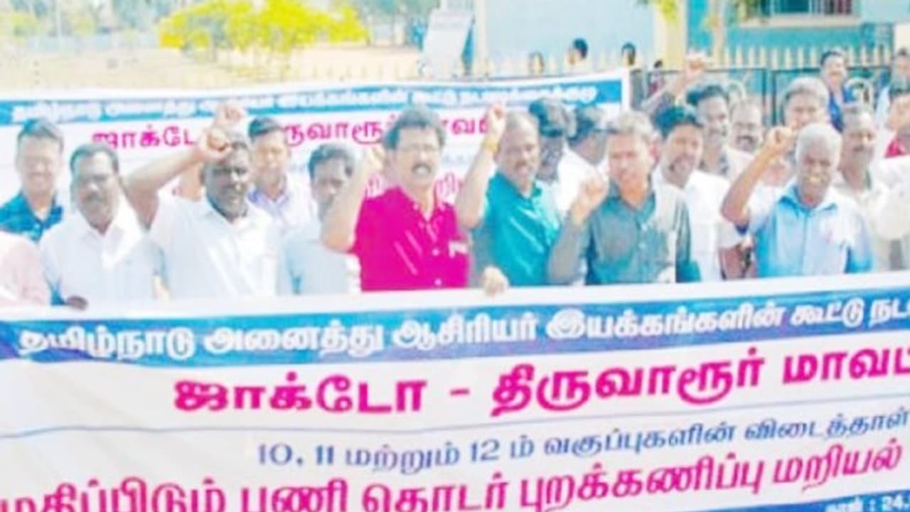 7-வது ஊதியக்குழு பரிந்துரையின் படி 21 மாத நிலுவை தொகை வழங்க வேண்டும்" உள்பட பல்வேறு கோரிக்கைகளை வலியுறுத்தி ஆசிரியர் இயக்கங்கள் போராட்டங்கள் நடத்தி வந்தன.