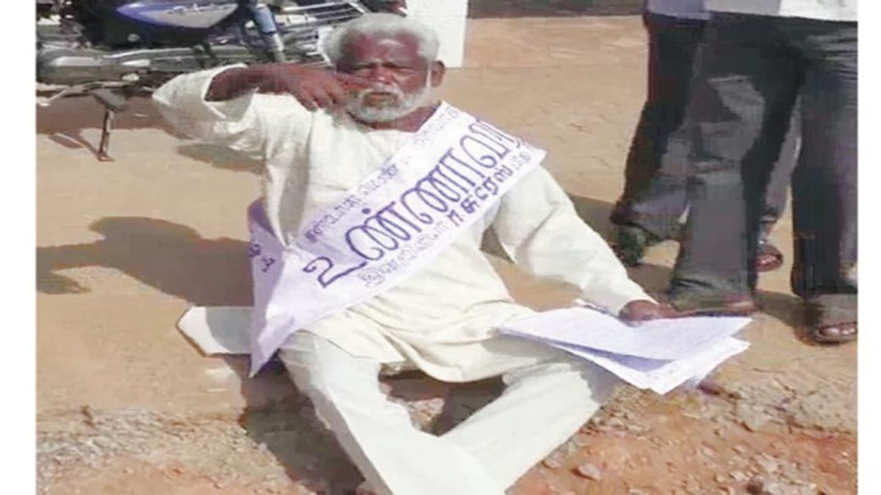 சிமெண்ட் நடைப்பாதை வேண்டி சிங்கிள் ஆளாக 65 வயது முதியவர் உண்ணாவிரதப் போராட்டத்தில் களமிறங்கிய சம்பவம் அப்பகுதி மக்களிடையே பூரிப்பை ஏற்படுத்தியது.