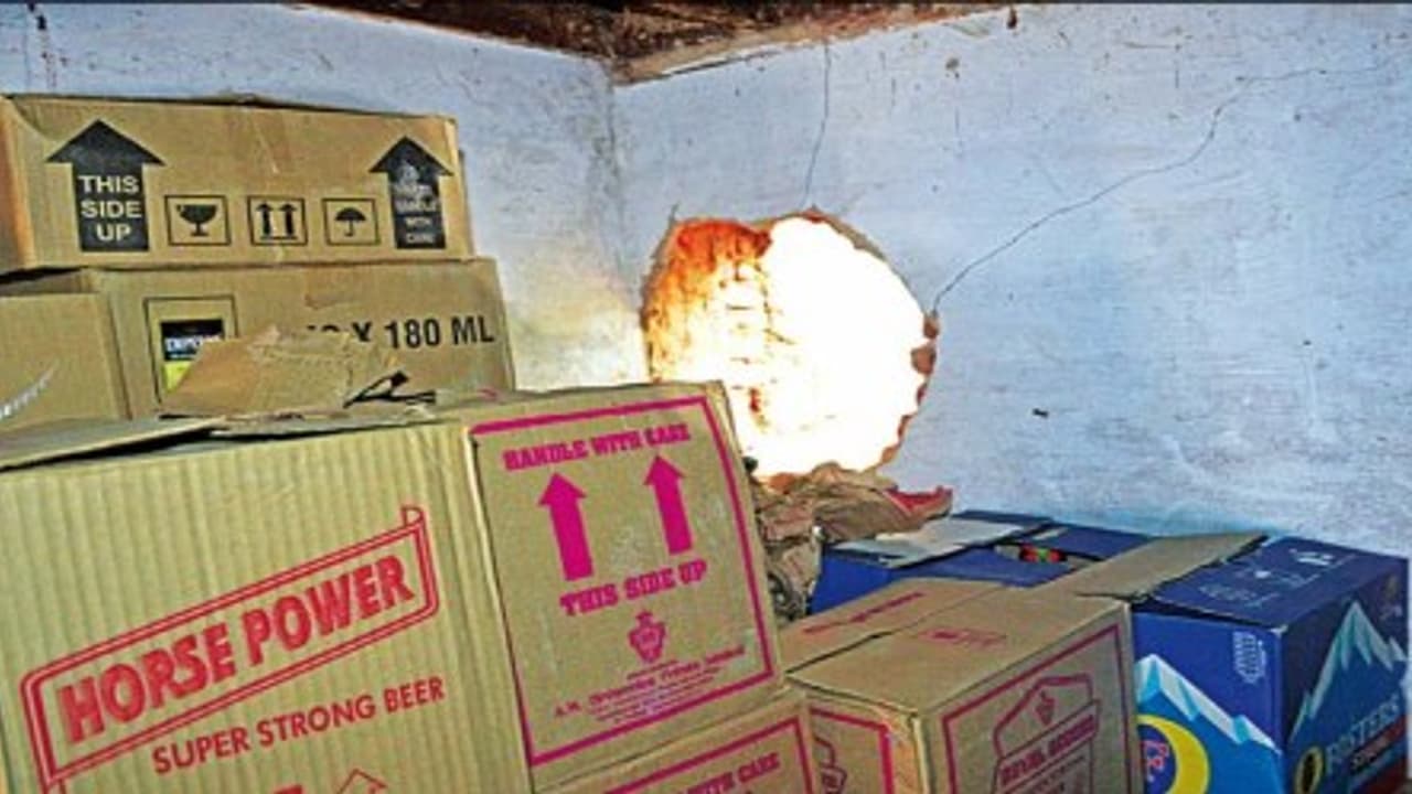 சிவகங்கையில் உள்ள ஆங்கிலப் படப் பாணியில் சாராயக் கடையின் சுவற்றில் ஓட்டைப்போட்டு ரூ.6 இலட்சத்தை மர்ம கும்பல் கொள்ளையடித்துச் சென்றுள்ளனர்.