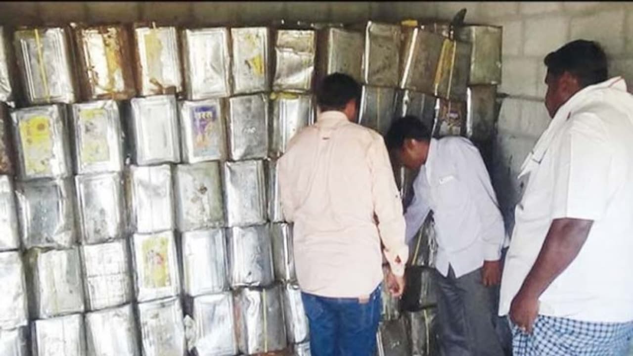 மேலும், அங்கிருந்த தலா 22 கிலோ எடை கொண்ட 55 டின்களில் அடைத்து வைக்கப்பட்டிருந்த கரும்பு பாகுவையும் அதிரடியாக பறிமுதல் செய்தனர்.