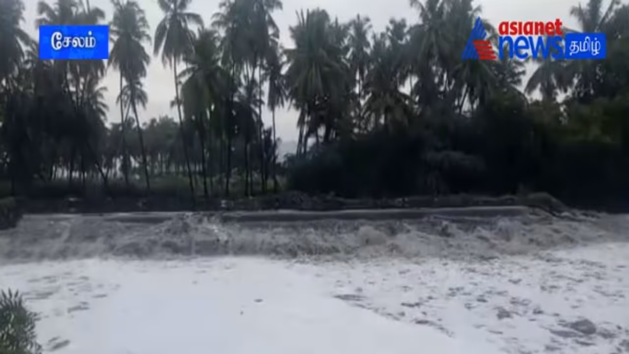 சேலத்தில் நேற்று இரவு முழுக்க தொடர்ந்து பெய்த மழையினால்,சேலம் சீலாவரி ஏரி நிரம்பி தண்ணீர் வெளியேறி வருகிறது.