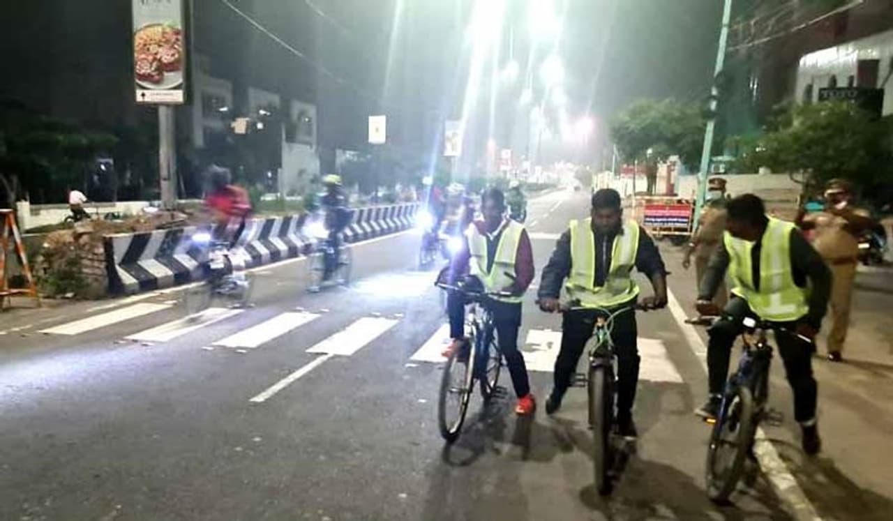 சென்னை கடற்கரை சாலையில் சைக்கிளிங் மேற்கொள்வோருக்கான தனி வழி பாதை ஒதுக்கப்பட்டு வெற்றிகரமாக சோதனை ஓட்டம் நடத்தப்பட்டது.