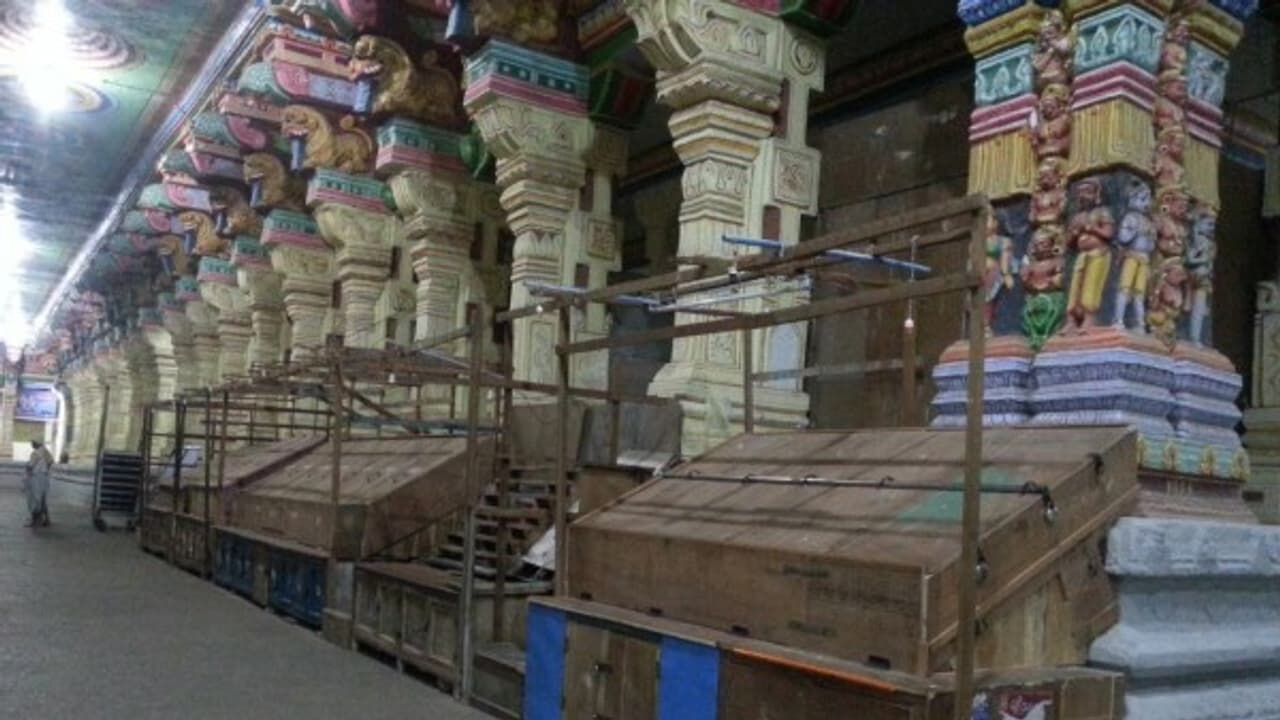 ராமேஸ்வரம் கோயில் பிரகாரத்தில் சுமார் 100 ஆண்டுகளுக்குமேல் இயங்கி வந்த கடைகள் அப்புறப்படுத்தப்பட்டுள்ளன. மதுரை மீனாட்சி அம்மன் கோயில் தீ விபத்து எதிரொலியாக, ராமேஸ்வரம் கோயில் பிரகாரத்தில் உள்ள கடைகள் அப்புறப்படுத்தப்பட்டுள்ளன.