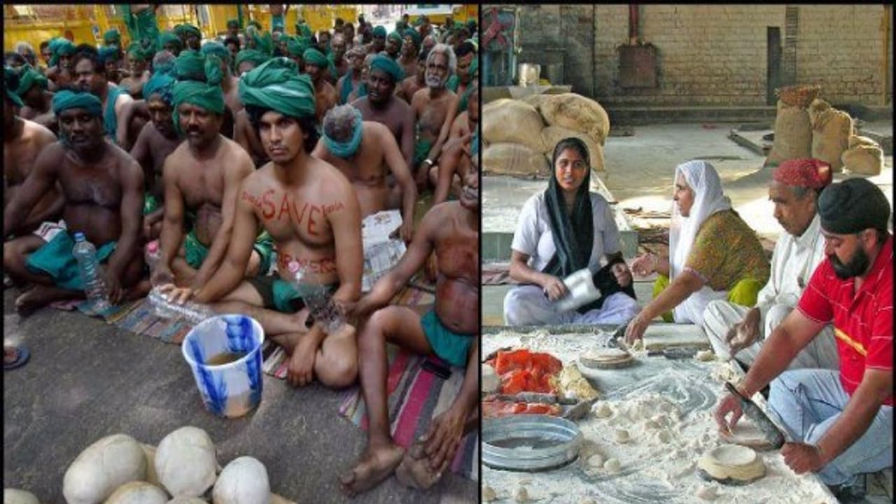 டெல்லியில் உள்ள ‘பங்ளா சாஹிப் குருத்வாரா’ அமைப்பைச் சேர்ந்த சீக்கியர்களே தமிழக விவசாயிகளுக்கு நாள்தோறும் சப்பாத்தி, பருப்பு, காய்கறிகள், சாதம், உள்ளிட்ட உணவுகளை இலவசமாக அளித்து அவர்களின் பசியை போக்கி வருகின்றனர்.