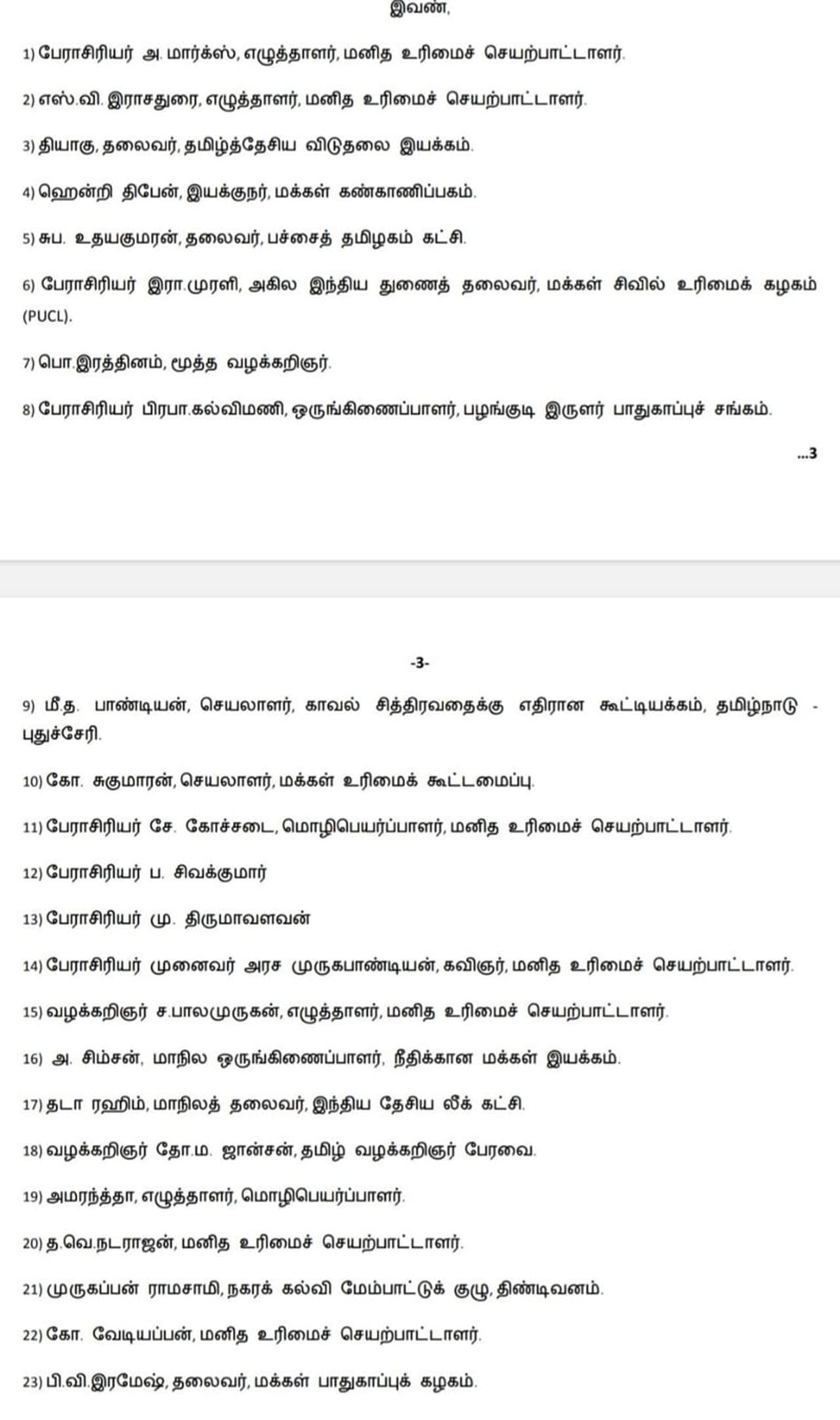 தமிழக அரசையும், காவல்துறையையும் தொடர்ந்து விமர்சிக்கும் சவுக்கு சங்கர், பெலிக்ஸ் ஜெரால்ட் போன்ற ஊடகவியலாளர்களை மீது பழிவாங்கும் நோக்கில், ஊடகச் சுதந்திரத்திற்கு எதிராக நடவடிக்கைகள் மேற்கொள்ளும் போக்கை வன்மையாகக் கண்டிக்கிறோம். சவுக்கு சங்கர் மீது தாக்குதல் நடத்தி அவரது வலது கையை உடைத்த கோவை மத்திய சிறைக் காவலர்கள், சிறைக் கண்காணிப்பாளர் செந்தில்குமார் மீது உரிய குற்ற நடவடிக்கை மேற்கொள்ளப்பட வேண்டும். ஊடகவியலாளர்கள் சவுக்கு சங்கர், பெலிக்ஸ் ஜெரால்ட் கைது, அவர்கள் மீதான மனித உரிமை மீறல்கள் குறித்து உயர்நீதிமன்ற ஓய்வுபெற்ற நீதிபதி தலைமையில் நீதி விசாரணைக்கு உத்தரவிட வேண்டும் என மனித உரிமை ஆர்வலர்கள், அரசியல் செயற்பாட்டாளர்கள், எழுத்தாளர்கள் கூட்டறிக்கை வெளியிட்டுள்ளனர்.