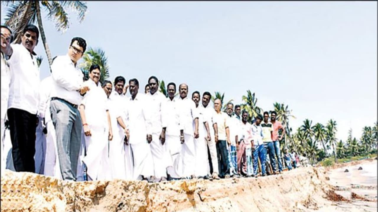 கடல் சீற்றத்தால் தாழங்குடா கடற்கரையில் அதிகளவில் மண் அரிப்பு ஏற்பட்டுள்ளதை ஆட்சியர் பிரசாந்த் மு.வடநேரே, தொழில்துறை அமைச்சர் எம்.சி.சம்பத் ஆகியோர் பார்வையிட்டனர்.