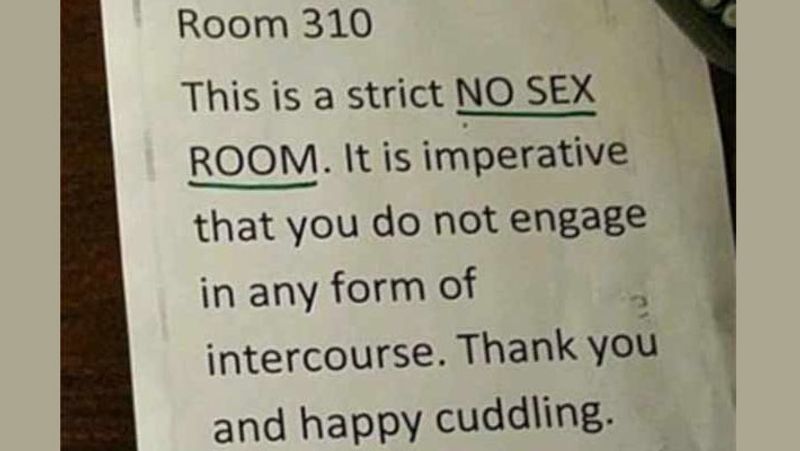 இது தொடர்பாக ரோபனேட்டர் என்ற பெயரில் ஒருவர் ரெட்டிட் இணையதளத்தில் இது குறித்து பதிவிட்டுள்ளார். குறிப்பிட்ட எண் கொண்ட ரூமை புக் செய்து சென்றபோது, நோ செக்ஸ் போர்டைப் பார்த்து வெகுவாக குழம்பித்தான் போனாராம். இங்கு செக்ஸ் கிடையாது... எந்த வகையான உடலுறவும் மேற்கொள்ளக் கூடாது... ஜாலியாக கட்டி மட்டும் பிடிச்சுக்கலாம் என்று போட்டுள்ளதாம். எது எப்படியோ, இந்த ஓட்டலுக்கு போறதும்... போகாததும் நீங்கதான் முடிவு செய்யணும். என்ன முடிவு பண்ணிட்டீங்களா?