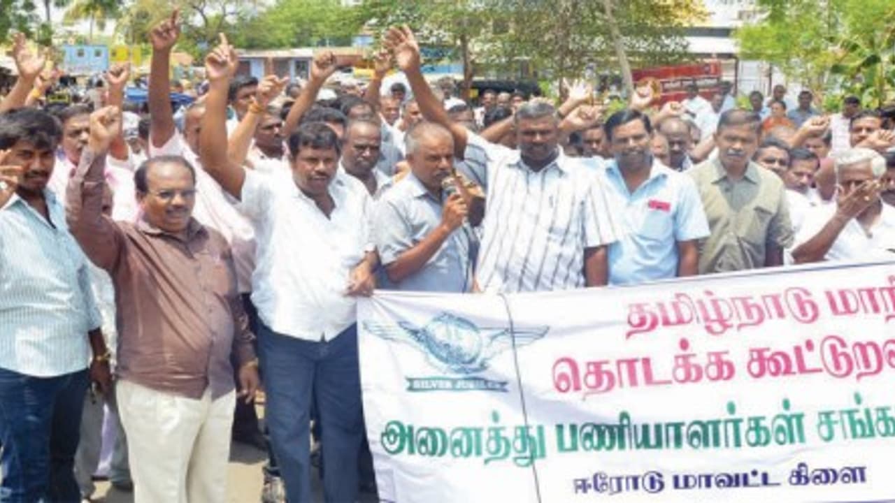 கூட்டுறவுச் சங்கப் பணியாளர்களை பணிநீக்கம் செய்ய நடக்கும் முயற்சிகளுக்கு கண்டனம் தெரிவித்து தமிழ்நாடு மாநிலத் தொடக்கக் கூட்டுறவு வங்கி அனைத்துப் பணியாளர்கள் சங்கத்தினர் ஈரோட்டில் ஆர்ப்பாட்டம் நடத்தி முழக்கங்களை எழுப்பினர்.