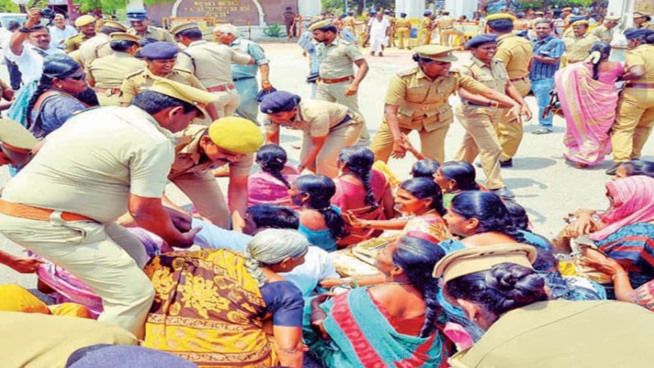 அப்போது, மறியல் பேராட்டத்தில் ஈடுபட்ட 298 பெண்கள் உள்பட 370 பேரை காவலாளர்கள் குண்டுகட்டாக தூக்கி கைது செய்தனர்.