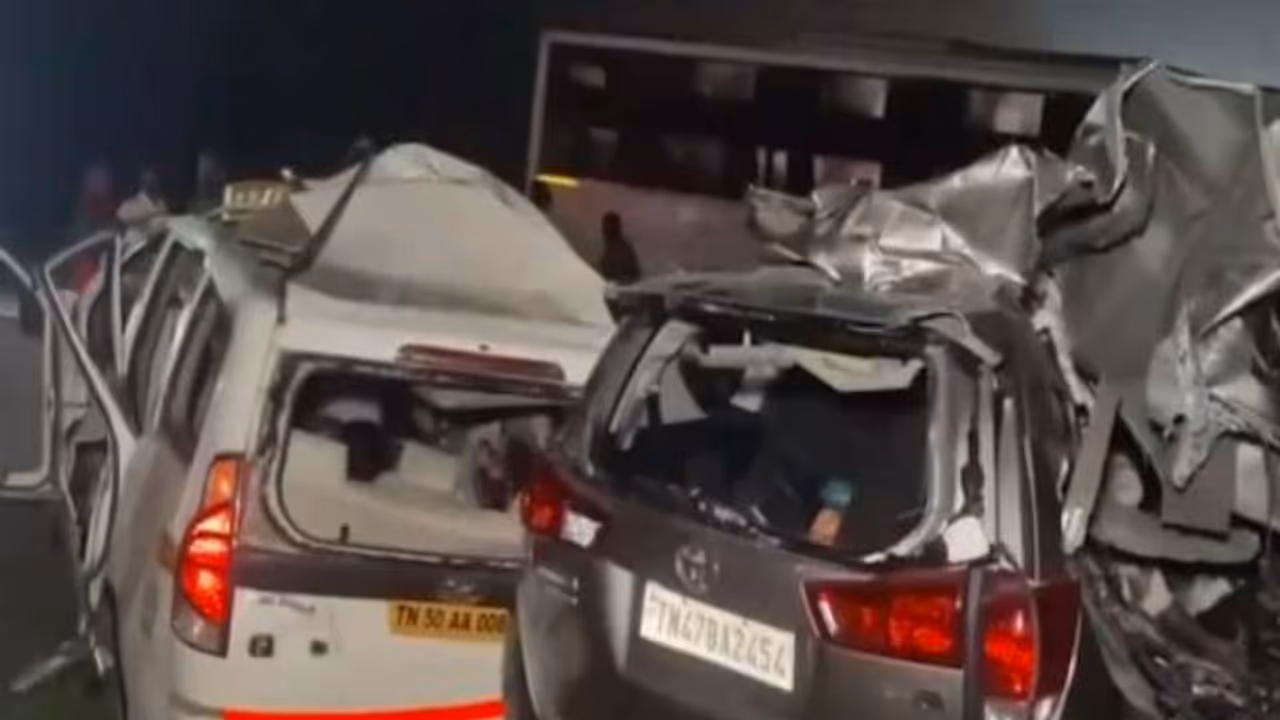 இதனால் கட்டுப்பாட்டை இழந்த பேருந்து சாலையின் தடுப்பை தாண்டி எதிர்புற சாலையில் சென்று கொண்டிருந்த இரண்டு கார்கள் மீது மோதியது. இந்த கோர விபத்தில் இரண்டு கார்களிலும் பயணம் செய்த 4 பெண்கள் உள்பட 9 பேர் பரிதாபமாக உயிரிழந்தனர். மேலும் 4 பேர் படுகாயம் அடைந்து உயிருக்கு ஆபத்தான நிலையில் மருத்துவமனையில் சிகிச்சை பெற்று வருகின்றனர்.