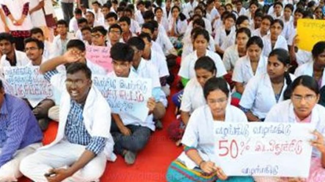 முதுநிலை மருத்துவப் படிப்பில் 50 சதவீத இடஒதுக்கீடு கோரி மருத்துவ மாணவர்கள் கடந்த 15 தினங்களுக்கும் மேலாக பல்வேறு கட்டப் போராட்டங்களில் ஈடுபட்டு வருகின்றனர். இடஒதுக்கீடை திரும்பப் பெற சிறப்புச் சட்டமே தீர்வு என்றும் மருத்துவ மாணவர்கள் தொடர்ந்து வலியுறுத்தி வருகின்றனர்.