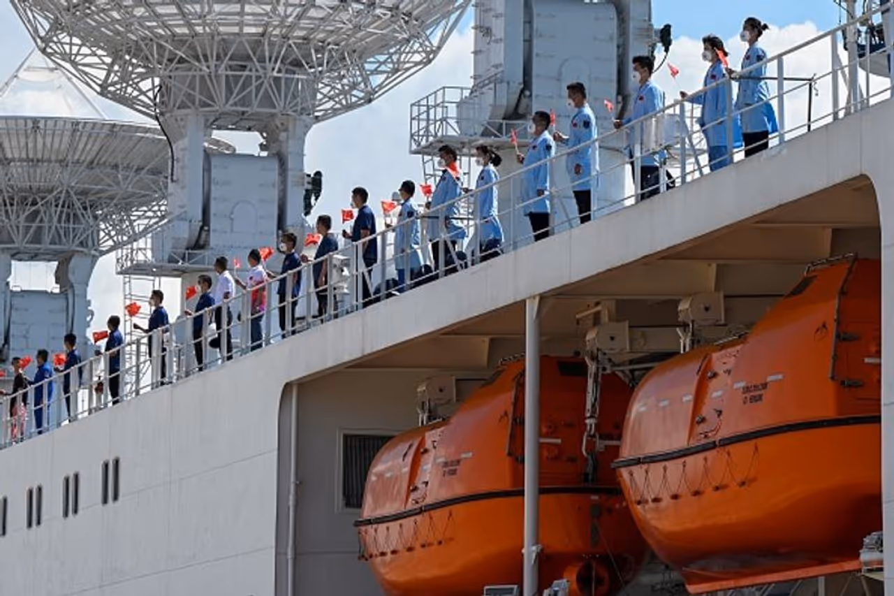 அம்பாந்தோட்டை துறைமுகத்தில் நிறுத்தப்பட்டுள்ள சீனாவின் கப்பலில், செயற்கைக்கோள்கள், ராக்கெட்டுகள் மற்றும் கண்டம்விட்டு கண்டனம் பாயும் ஏவுகணை, ஏவுகணைகளை கண்காணிக்கப் பயன்படுத்தப்படும் கருவிகள் உள்ளன.
