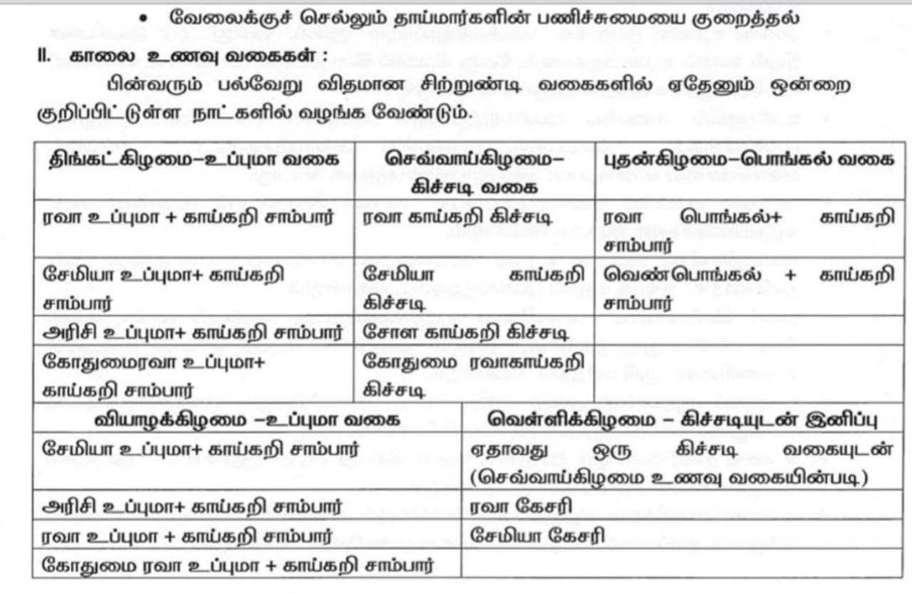 முதலமைச்சரின் காலை உணவு திட்டம் - இதுதான் மெனு