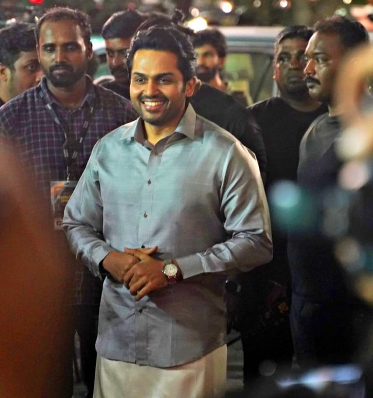 மணிரத்னம் இயக்கியுள்ள பொன்னியின் செல்வன் படத்தின் இசை வெளியீட்டு விழா சென்னையில் பிரம்மாண்டமாக நடைபெற்று வருகிறது. இதில் பாரம்பரிய உடையான வேஷ்டி சட்டை அணிந்து வந்து கலந்துகொண்டார் நடிகர் கார்த்தி. இவர் இப்படத்தில் வந்தியத்தேவனாக நடித்துள்ளார்.