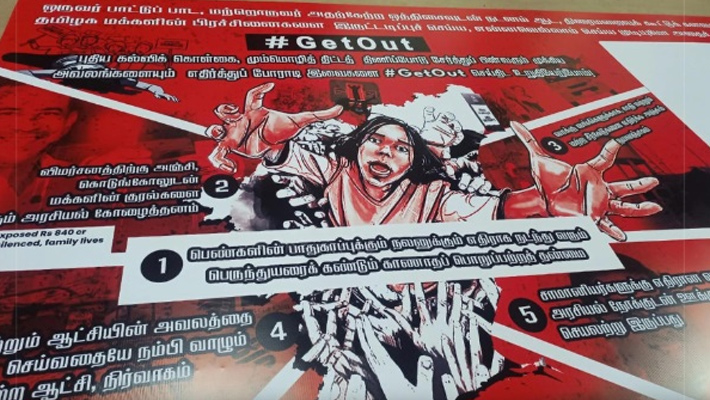 இந்த விழாவையொட்டி வழியெங்கும் வைக்கப்பட்டுள்ள பேனர்களில் அனைவரின் கவனத்தையும் ஈர்த்துள்ளது. அதில் மத்திய, மாநில அரசுக்கு எதிராக மொத்தம் 6 பாயிண்ட்களுடன் மத்திய, மாநில அரசுகளை விமர்சித்து #GETOUT என்கிற ஹேஷ்டேக்கும் இடம்பெற்றுள்ளது.