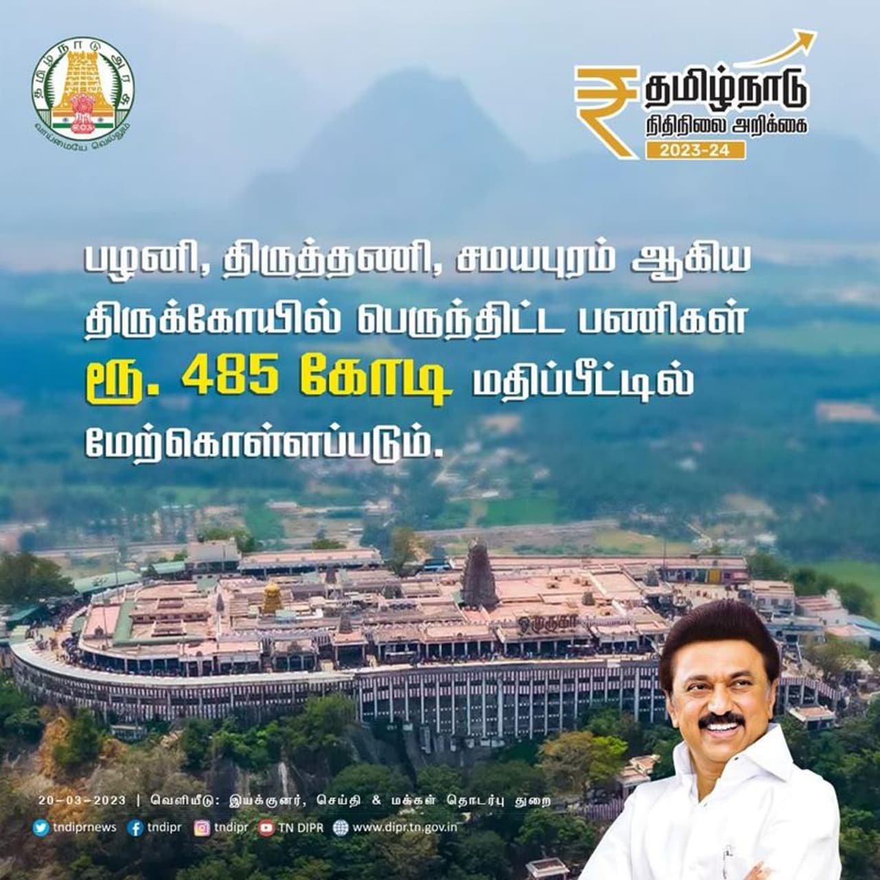 வரும் நிதியாண்டில் 400 கோயில்களில் திருப்பணிகள் முடிக்கப்பட்டு, குடமுழுக்கு நடத்தப்படும் என நிதியமைச்சர் பழனிவேல் தியாகராஜன் கூறியுள்ளார்.