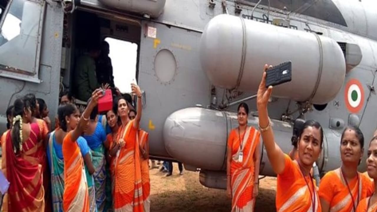 teachers took selfie in front of Indian navys rescue operation helicopter