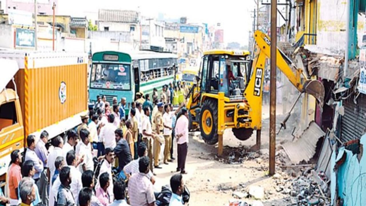 விழுப்புரத்தில் ஆக்கிரமிப்பில் இருந்த பதின்மூன்று கடைகள் மற்றும் தி.மு.க. நகர அலுவலகத்தின் பெரும் பகுதியும் ஒரே நாளில் அதிரடியாக அகற்றப்பட்டன.