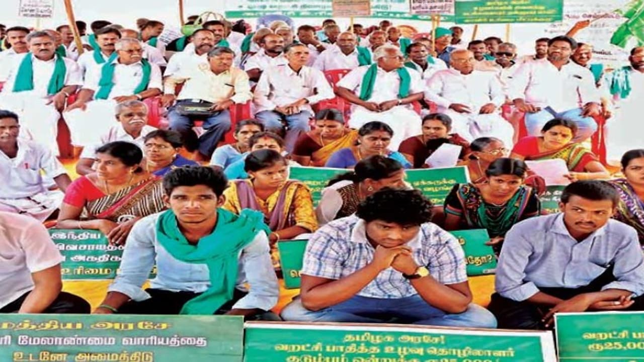 இறந்த விவசாயிகளுக்கு உரிய இழப்பீடு வழங்க வேண்டும் போன்ற பல்வேறு கோரிக்கைகளை வலியுறுத்தி இந்தத் தொடர் போராட்டம் நடத்தப்பட்டு வருகிறது.