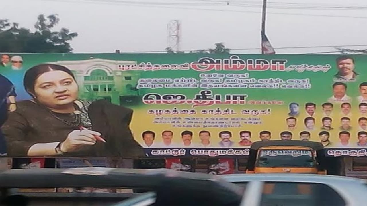 திருவாரூர் மாவட்டம் முத்துப்பேட்டை - மன்னார்குடி சாலையில் சென்றுக் கொண்டிருந்த மினிவேனில் ஜெ.தீபா பேரவையின் விளம்பர பதாகைகள் இருந்தன.