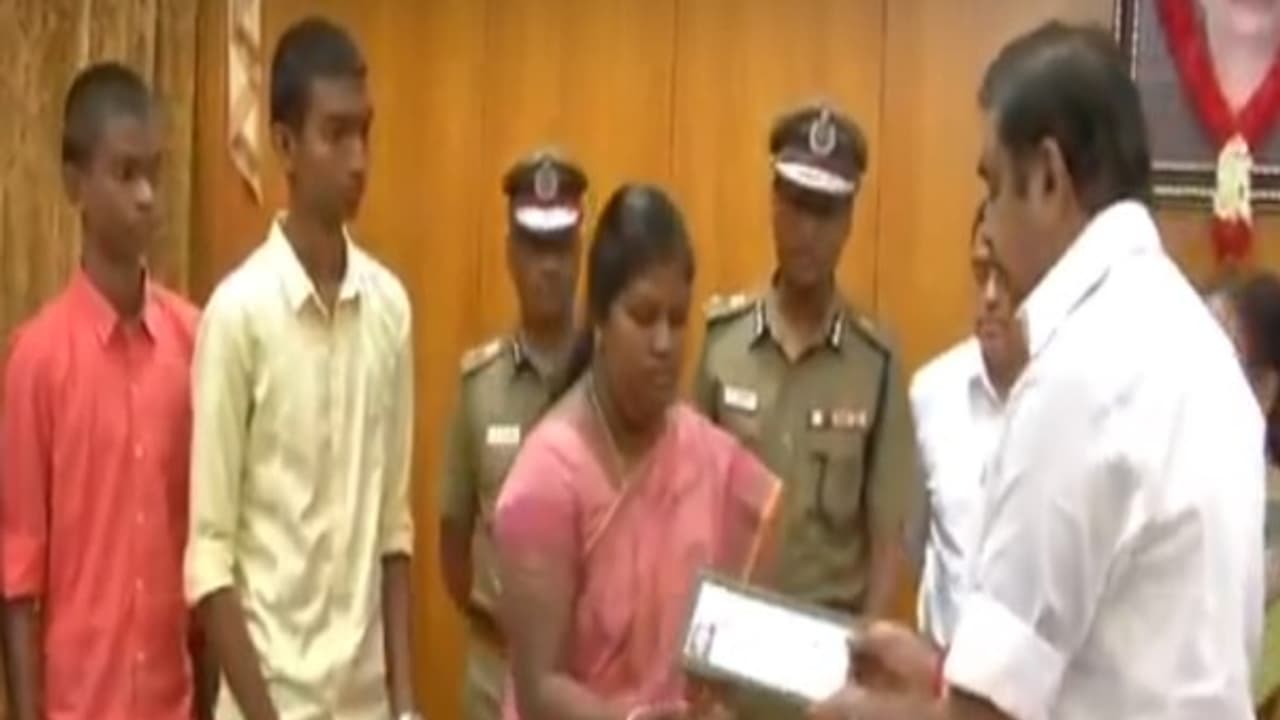 கொள்ளையனைப் பிடிக்க சென்றபோது துப்பாக்கியால் சுட்டு உயிரிழந்த காவல் ஆய்வாளர் பெரியபாண்டியன் குடும்பத்துக்கு, முதலமைச்சர் எடப்பாடி பழனிசாமி, ஒரு கோடி ரூபாய்க்கான காசோலையை வழங்கினார்.