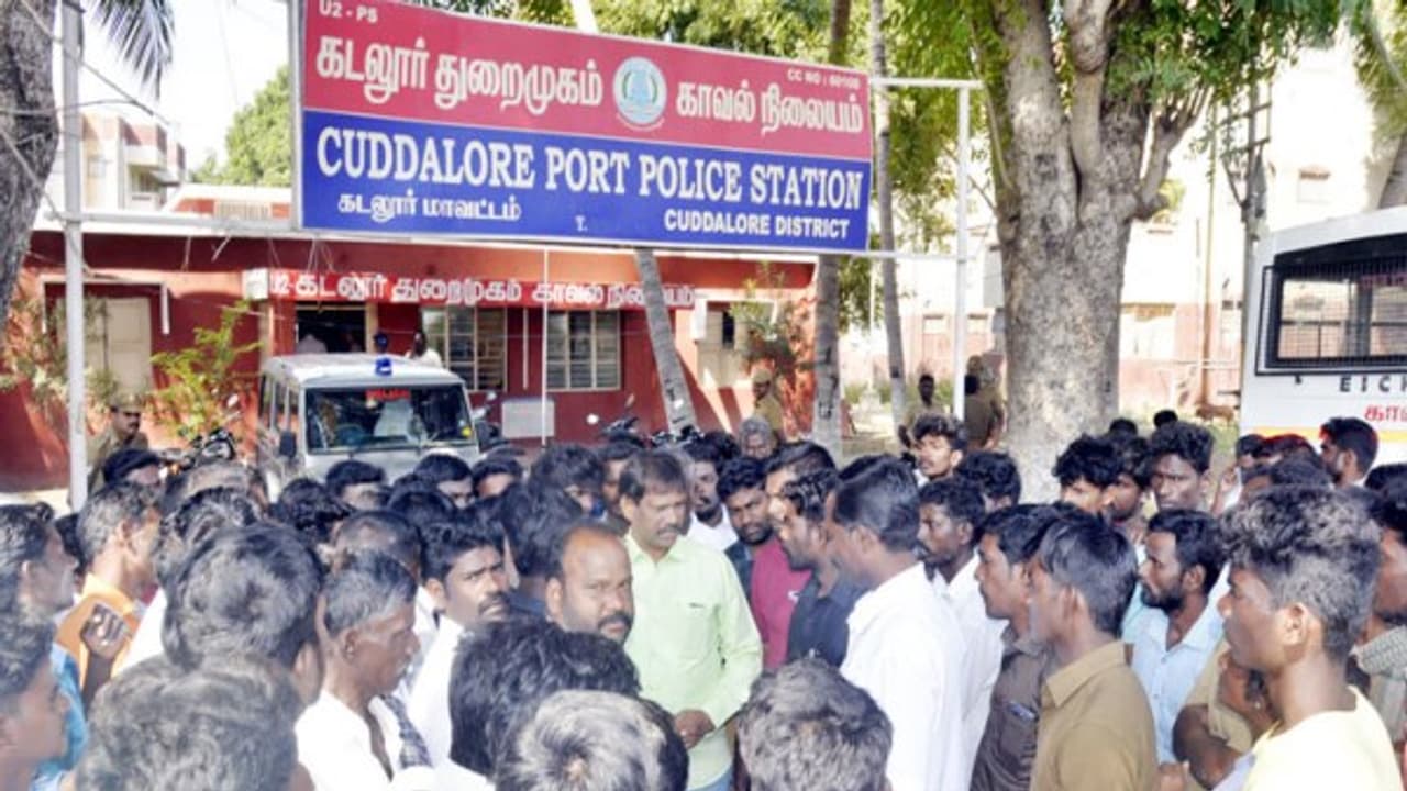 அந்த பகுதியை சேர்ந்த விடுதலை சிறுத்தைகள் கட்சியினர் கடலூர் துறைமுகம் போலீஸ் நிலையம் முன்பு ஒன்று திரண்டு வந்தனர். பின்னர் அவர்கள் தர்மன், மகா பிரபு என்ற இளைஞர்களின் மரணத்துக்கு தென்னந்தோப்பு உரிமையாளரை கைது செய்து நடவடிக்கை எடுக்குமாறு போலீஸ் நிலையத்தை முற்றுகையிட்டனர்.