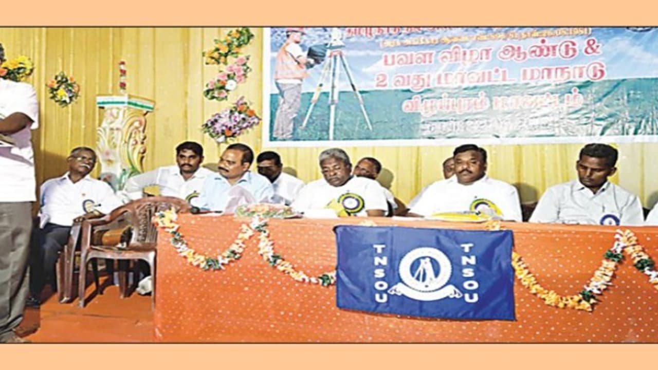 “வருவாய்த் துறையில் வெற்றிடமாக இருக்கும் நில அளவையாளர் பணியிடங்களை விரைந்து நிரப்ப வேண்டும்” உள்ளிட்ட பல்வேறு தீர்மானங்கள் தமிழ்நாடு நில அளவை அலுவலர்கள் ஒன்றிப்பு மாவட்ட மாநாட்டில் நிறைவேற்றப்பட்டது.