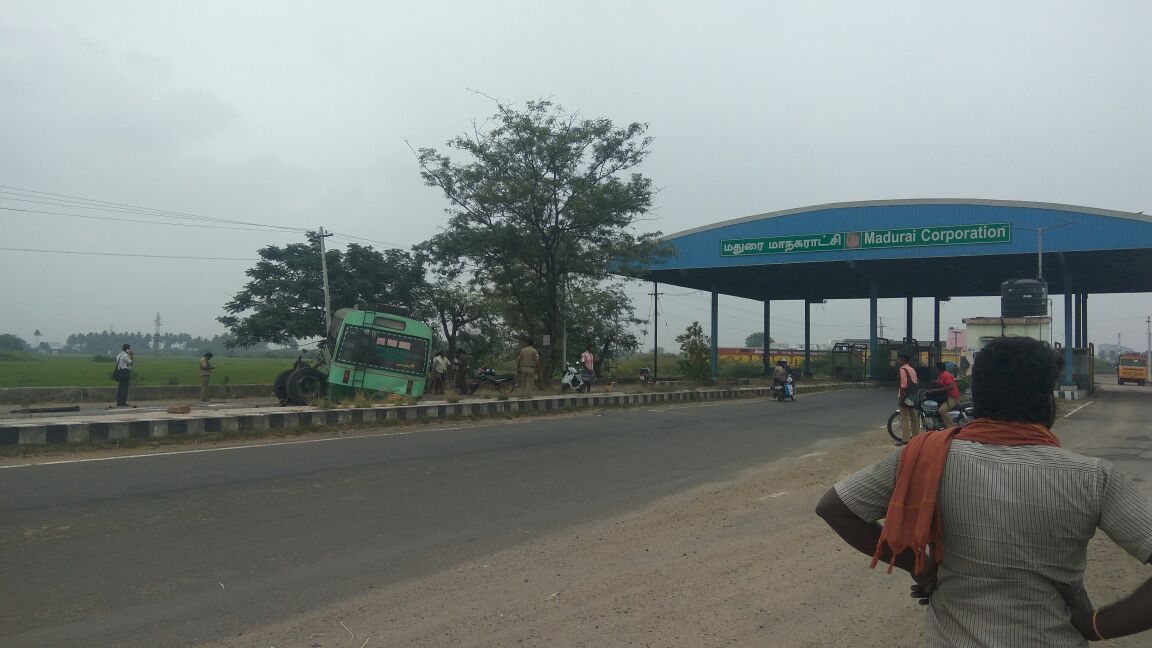 சென்னையில் இருந்து நாகர்கோவில் சென்று கொண்டிருந்த அரசு பேருந்து மதுரை சுற்றுசசாலை அருகே சென்றுக் கொண்டிருந்தது. சிந்தாமணி விளக்கு அருகே வந்தபோது பேருந்தில் ஏற்பட்ட கோளாறு காரணமாக பேருந்து ஓட்டுநரின் கட்டுப்பாட்டை இழந்தது.