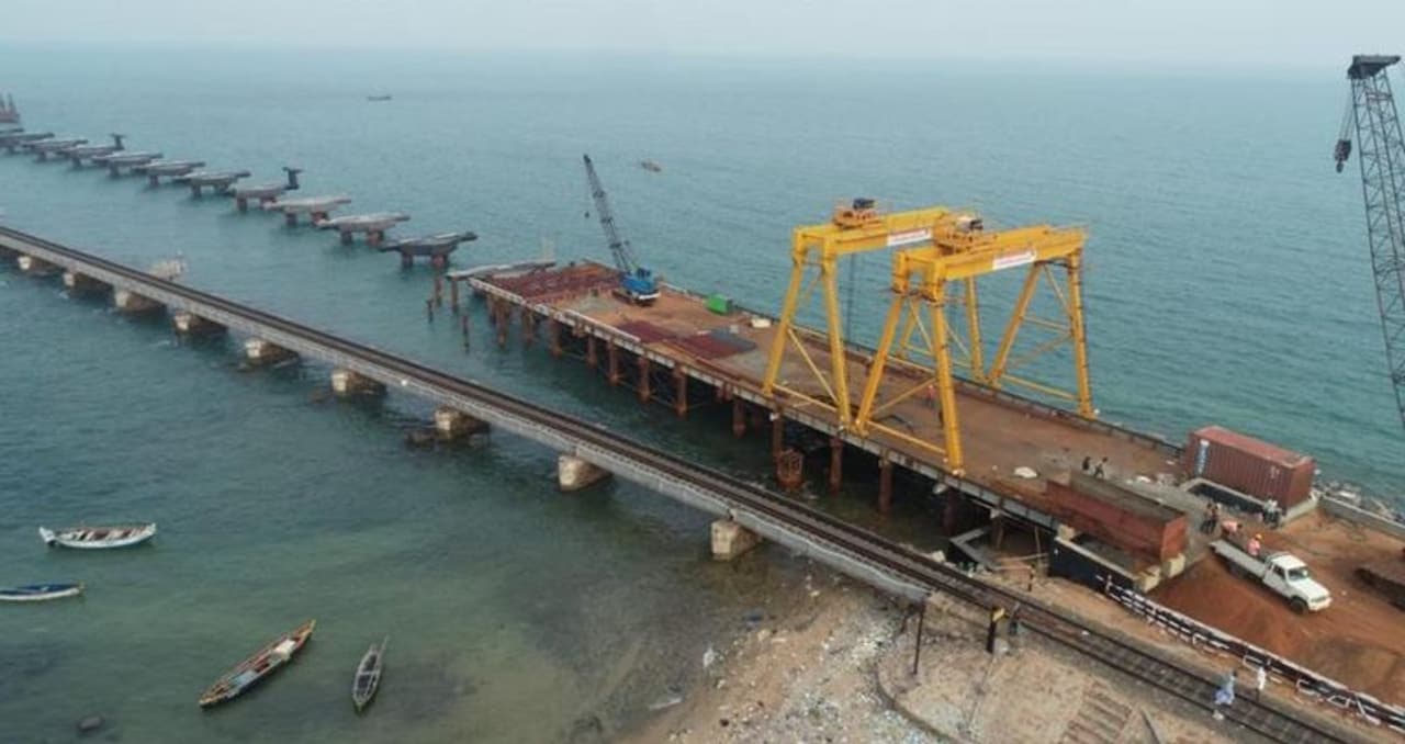 ஆங்கிலேயர்கள் காலத்தில் கட்டப்பட்ட பாம்பன் ரயில் பாலத்தில் ஏராளமான விரிசல்கள் விழுந்ததையடுத்து, அதற்குப் பதிலாக புதிய பாலம் கட்ட கடந்த 2018ம் ஆண்டு மத்திய அமைச்சரவை முடிவு செய்தது. இந்தத் திட்டத்துக்காக ரூ.250 கோடி ஒதுக்கப்பட்டு, கடந்த 2019ம் ஆண்டு ரயில்பாலப் பணிகளை பிரதமர் மோடி காணொலி வாயிலாக அடிக்கல்நாட்டினார்.