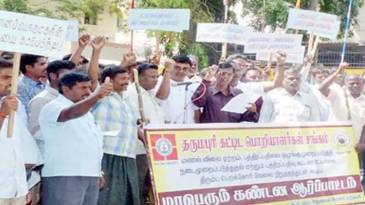 இந்தக் கோரிக்கைகளை வலியுறுத்தி தர்மபுரி மாவட்டத்தில் கட்டிடப் பொறியாளர்களும், கட்டுமான தொழிலாளர்களும் நேற்று ஒருநாள் வேலை நிறுத்தத்தில் ஈடுபட்டனர்.