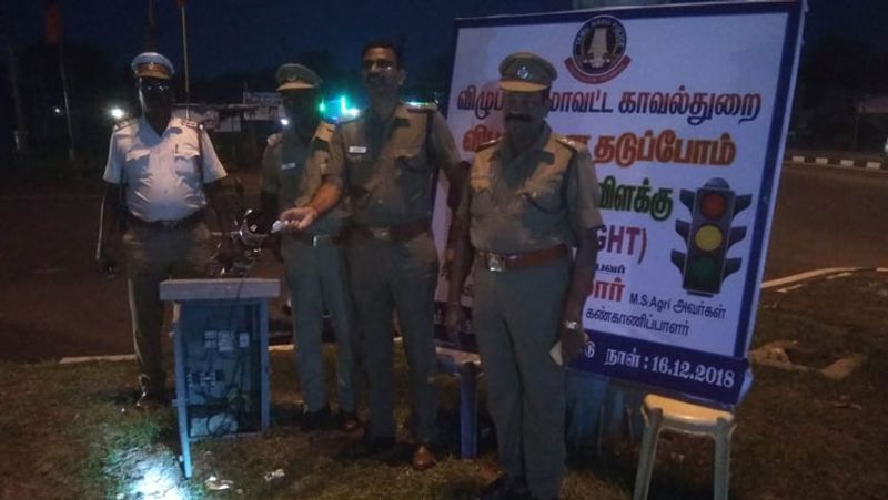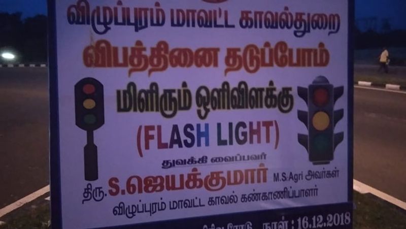சென்னை - திருச்சி தேசிய நெடுஞ்சாலையில், விழுப்புரம் மாவட்டத்தில் விபத்துகளை தடுக்க மாவட்ட எஸ்பி மிளிரும் விளக்குகளை அமைத்துள்ளார்.