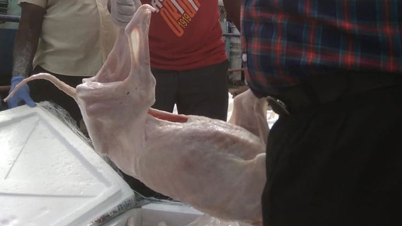 கடந்த 18 ஆம் தேதி ராஜஸ்தான் மாநிலம் ஜோத்பூரில் இருந்து சென்னை வந்தடைந்த மண்ணை எக்ஸ்பிரஸ் ரயிலில் 20 பெட்டிகள் பார்சல் வந்தது. அதனை சோதனை செய்த உணவு பாதுகாப்புத்துறை அதிகாரிகள் அது நாய்க்கறி என கண்டறிந்து சென்னை கொடுங்கையூரில் அதனை ஒரே இடத்தில் கொட்டி எரித்தனர்.