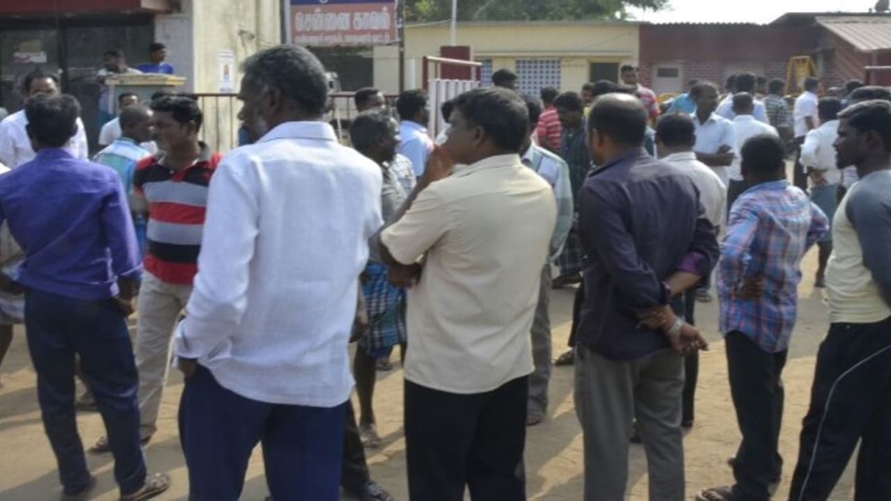 அதன்பேரில் போலீசார், மேற்கண்ட மீனவ கிராமங்களை சேர்ந்த மீனவ சங்க நிர்வாகிகளை காவல் நிலையம் கொண்டு சென்றனர். அவர்கள் மீது வழக்குப்பதிவு செய்யப்பட்டது. இதையறிந்ததும், நூற்றுக்கு மேற்பட்ட மீனவ மக்கள் எண்ணூர் காவல் நிலையம் முன் திரண்டனர்.
