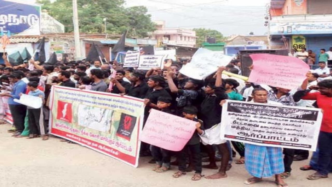 2000க்கும் மேற்பட்ட மாணவர்கள், பொதுமக்கள் ஏர்வாடி கைகாட்டி பேருந்து நிறுத்தத்தில் இருந்து ஊர்வலமாக சென்றனர். பிரதான சாலை வழியாக வந்து பேருந்து திருப்பம் பகுதியில் ஊர்வலம் முடிவடைந்தது.