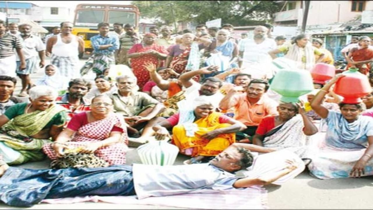 கரூரில், ஒரு வாரத்திற்கும் மேலாக சீராக குடிநீர் விநியோகிக்கப்படாததால் சினம் கொண்ட மக்கள் வெற்றுக் குடங்களுடன் குடிநீர் கேட்டு சாலையில் படுத்துக் கொண்டு மறியல் போராட்டம் நடத்தினர்.