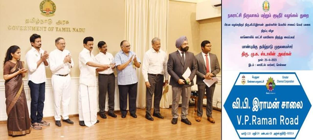 அதிமுக தலைமை அலுவலகம் அமைந்துள்ள அவ்வை சண்முகம் சாலையின் பெயர் மாற்றப்பட்டு முன்னாள் இந்திய கூடுதல் சொலிசிட்டர் ஜெனரல் வி.பி. இராமன் அவர்கள் நினைவாக "வி.பி. இராமன் சாலை" எனப் புதிய பெயர் சூட்டப்பட்ட சாலையின் பெயர் பலகையை தமிழ்நாடு முதலமைச்சர் மு.க.ஸ்டாலின் திறந்து வைத்தார்.