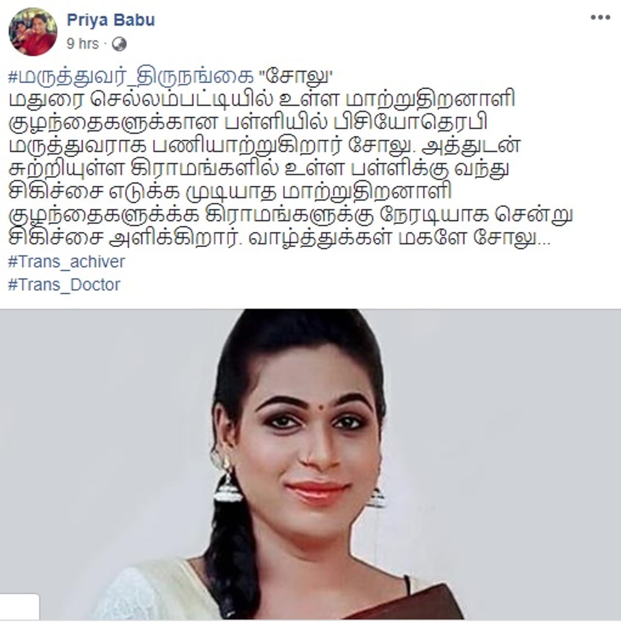 மதுரை மாவட்டத்தின் முதல் திருநங்கை பிசியோதெரபிஸ்ட்... திருநங்கை என்பதால் ஸோலு பட்ட பாடுகள் கொஞ்சமா நஞ்சமா?