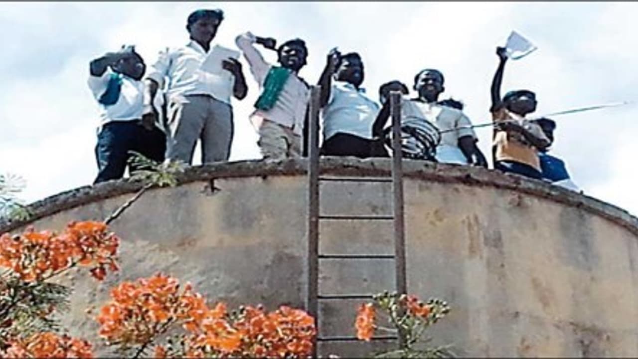 பின்னர், அவர்களில் பலர் மேல்நிலை நீர்த்தேக்க தொட்டி மீது ஏறி நின்று குடிநீர் பிரச்சனையை தீர்க்க வேண்டும்,