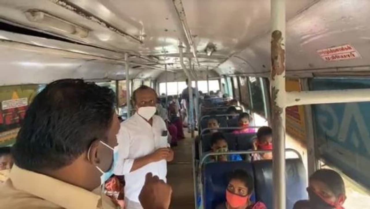 மேலும் அப்பேருந்தில் பயணம் மேற்கொண்ட பெரும்பாலான பொதுமக்கள் முக கவசம் அணியாமல் இருப்பதை கண்டு அதிர்ச்சியடைந்தார். பேருந்தில் முக கவசம் அணியாமல் இருந்த பயணிகளை கடுஞ்சொற்களால் திட்டினார். அதோடு இல்லாமல், பேருந்தில் உள்ளே ஏறி பார்வையிட்ட அவர், அறிவில்லையா உங்களுக்கு..? இப்படி முக கவசம் அணியாமல் பேருந்தில் வருறீங்களே இது உங்களுக்கே நியாயமா? என்று பொதுமக்களிடம் கோபப்பட்டார். நீங்க மட்டும் கொரோனா வராமல் இருந்தால் போதுமா? பிற மக்கள் பாவம் இல்லையா என்று கேள்வி எழுப்பினார்.