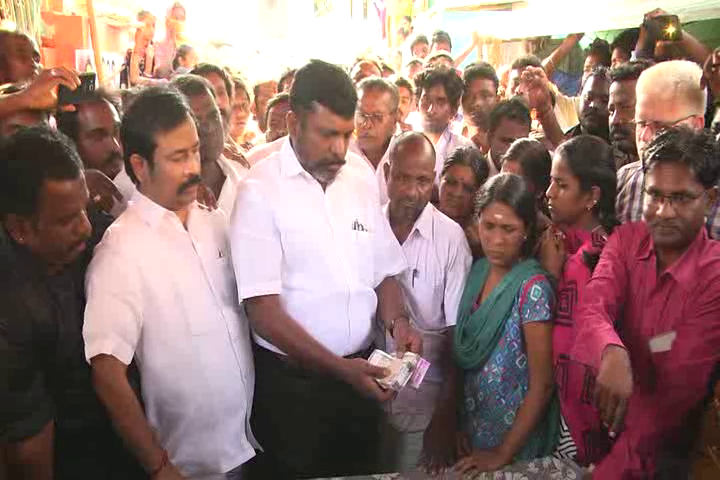 டெல்லி ஜவஹர்லால் நேரு பல்லகலைக்கழகத்தில் உயிரிழந்த சேலம் மாணவர் முத்துகிருஷ்ணனின் குடும்பத்தினரை விடுதலை சிறுத்தை கட்சித்தலைவர் தொல் திருமாவளவன் நேரில் சந்தித்து 1.25 லட்சம் ரூபாய் நிதி உதவி அளித்தார்.