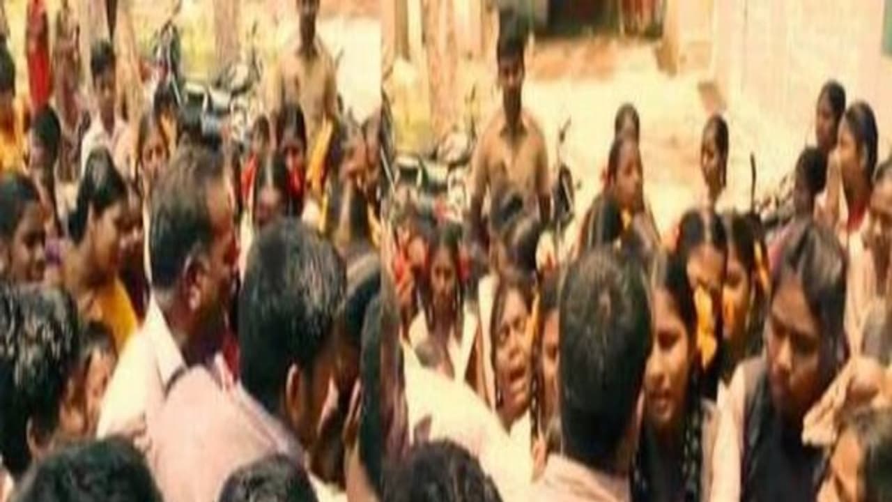 இதனால் அவர் வெளியே செல்ல முடியவில்லை. மற்ற ஆசிரியர்கள் வந்து சமாதானம் செய்தும் மாணவர்கள் அதை ஏற்றுக்கொள்ளவில்லை. இதையடுத்து வேறு வழியில்லாமல் போலீஸை வரவழைத்து சமாதானப்படுத்தி பின்னர் ஆசிரியரைப் போக அனுமதித்தனர்.