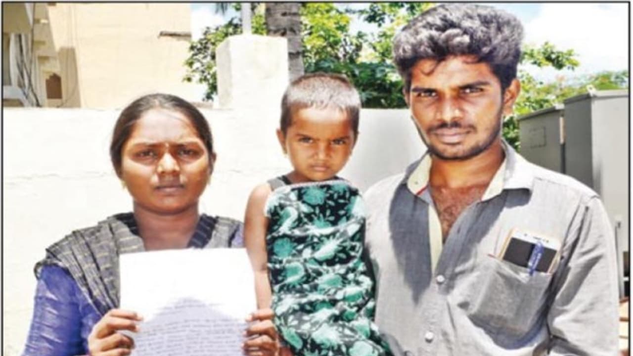 திருப்பூர் மாவட்டம், காங்கேயம் முள்ளிபுரம் காலனியைச் சேர்ந்தவர் ரஞ்சிதா (22). இவர் தனது கணவர் கதிரேசன் (25), மகள் நிஷாந்தினியுடன் (2) நேற்று காலை திருப்பூர் மாவட்ட காவல் கண்காணிப்பாளர் அலுவலகத்திற்கு மனு கொடுக்க வந்தார்.