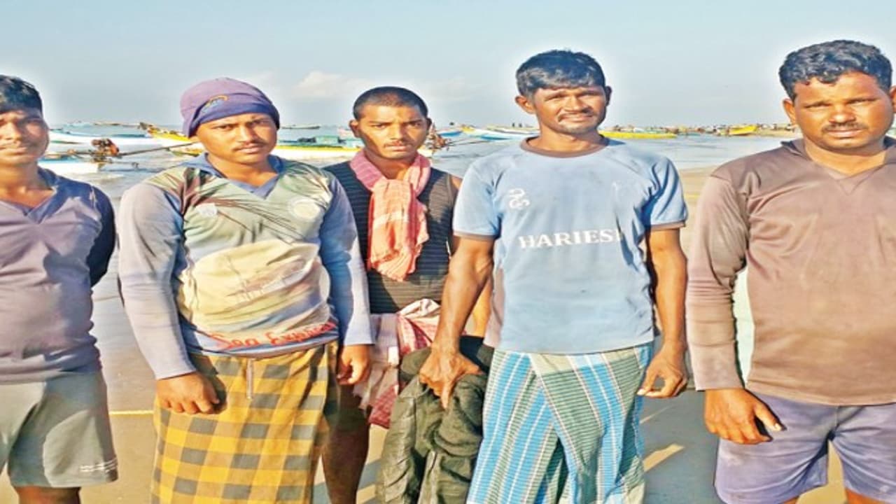நாகை மாவட்டம் தரங்கம்பாடி பகுதி பெருமாள்பேட்டையை சேர்ந்த பன்னீர்செல்வம் என்பவரின் பைபர் படகில் நேற்று முன்தினம் பன்னீர்செல்வம் (36), கார்த்திகேயன் (28), குருமூர்த்தி (20), பிரசாத் (23), விவேக் (20) ஆகிய ஐந்து பேரும் கடலுக்கு மீன்பிடிக்க சென்றனர்.